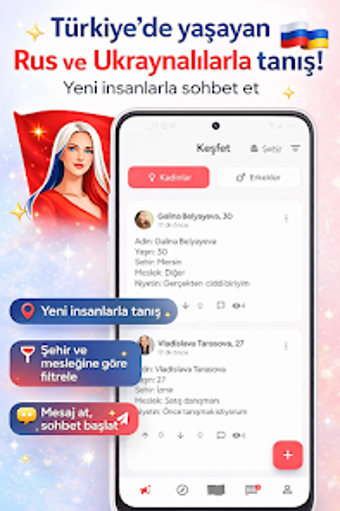 Русское и украинское знакомство — это приложение для социального открытия, доступное на Android, предназначенное для облегчения связей между людьми из России и Украины, проживающими в Турции. Приложение позволяет пользователям просматривать различные профили, позволяя им легко находить новых людей и начинать разговоры. Его удобный интерфейс обеспечивает плавный опыт, независимо от того, хотите ли вы завести новых друзей или установить более глубокие связи.